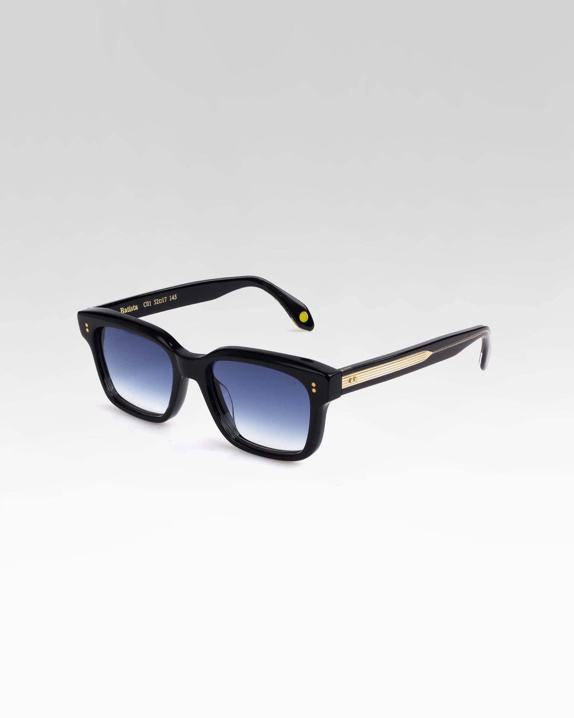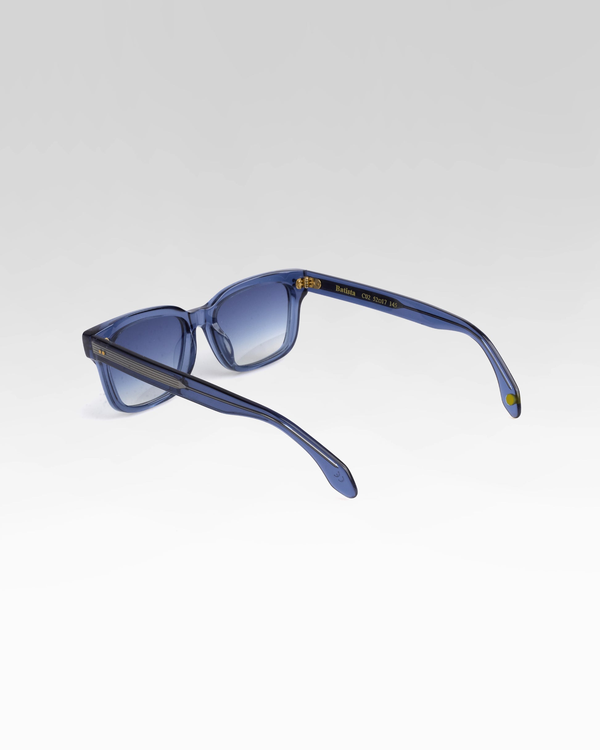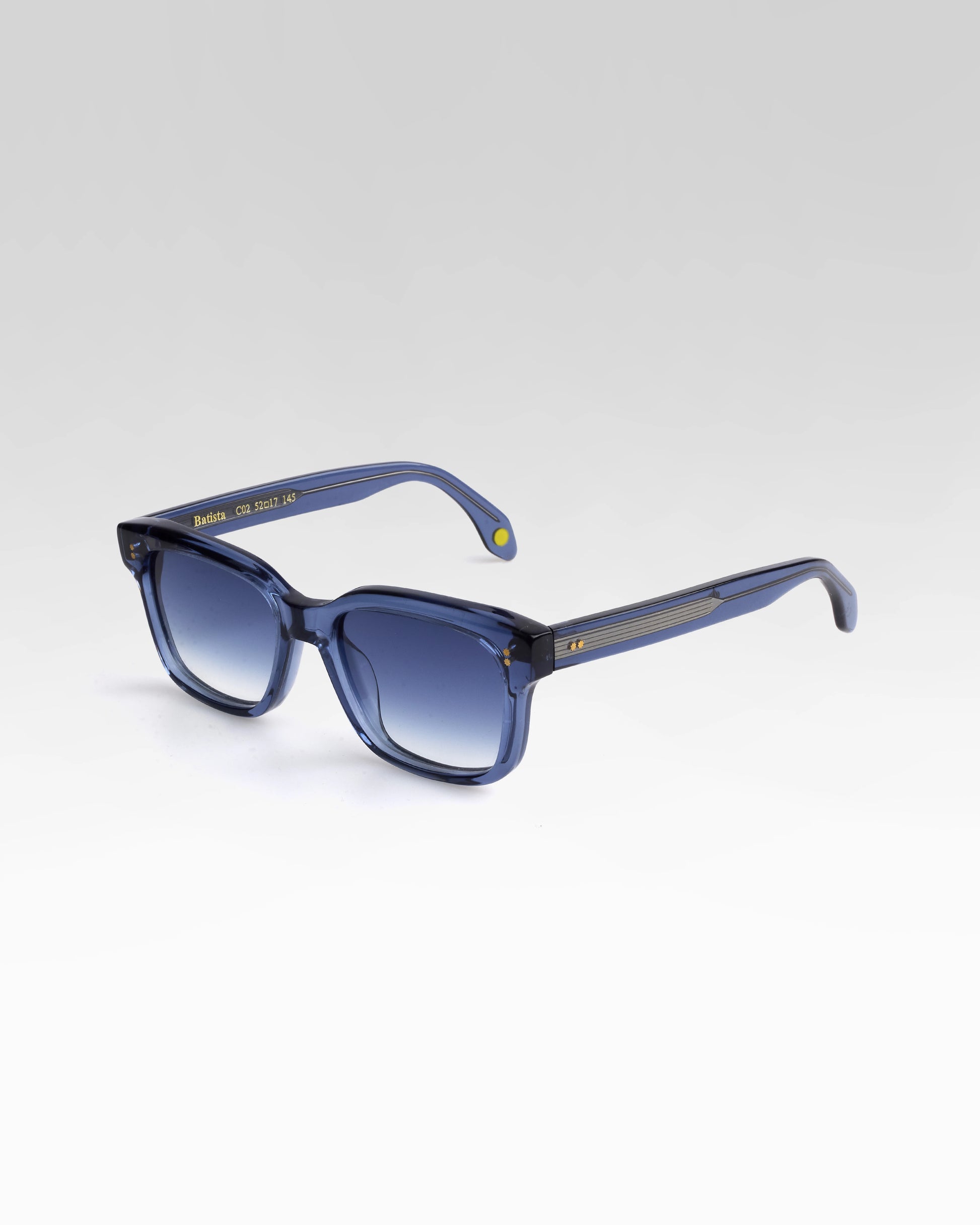 Sbarbatoo Batista è un occhiale dalla forma rettangolare, realizzato artigianalmente in acetato di cellulosa nel colore nero, blu e trasparente.