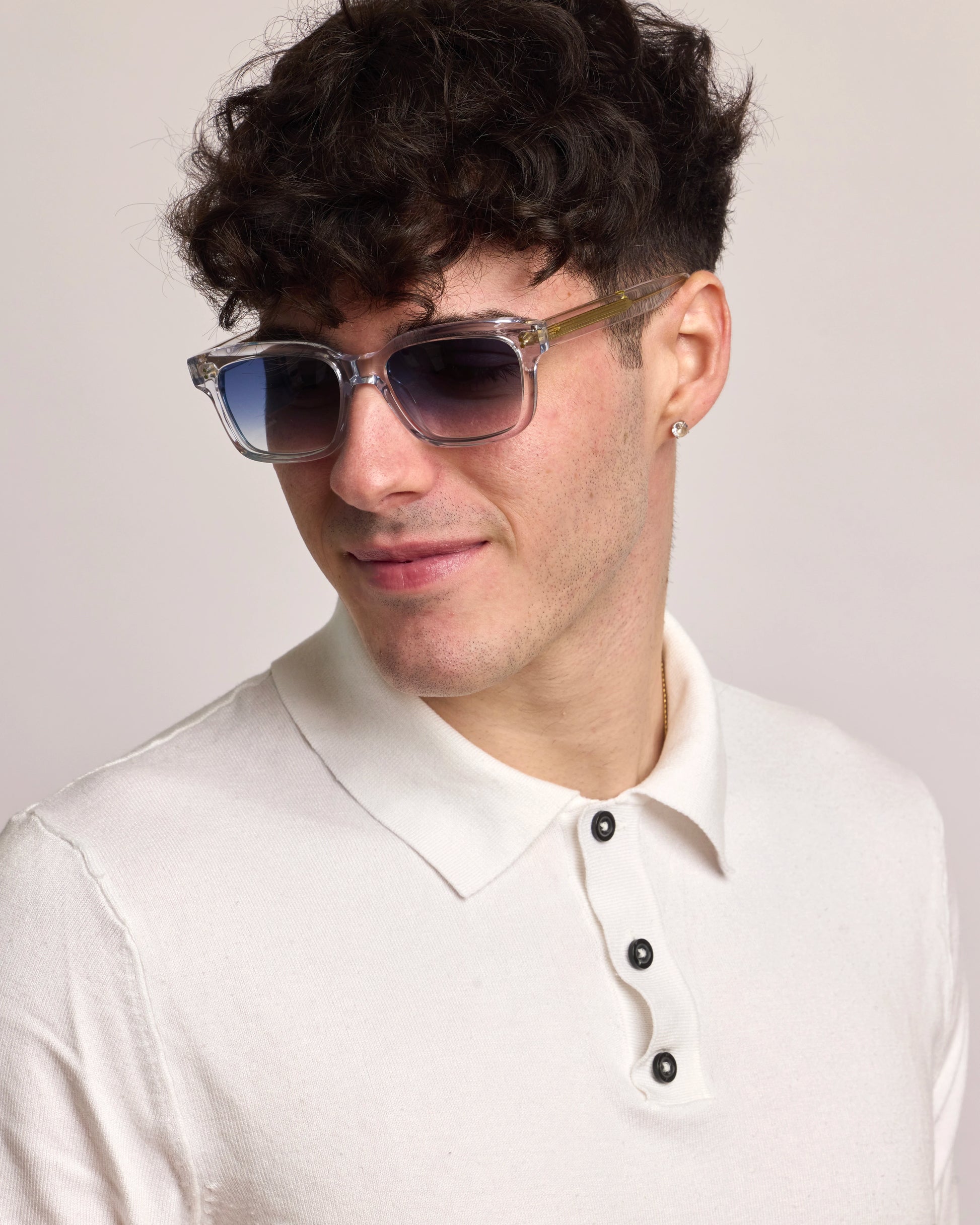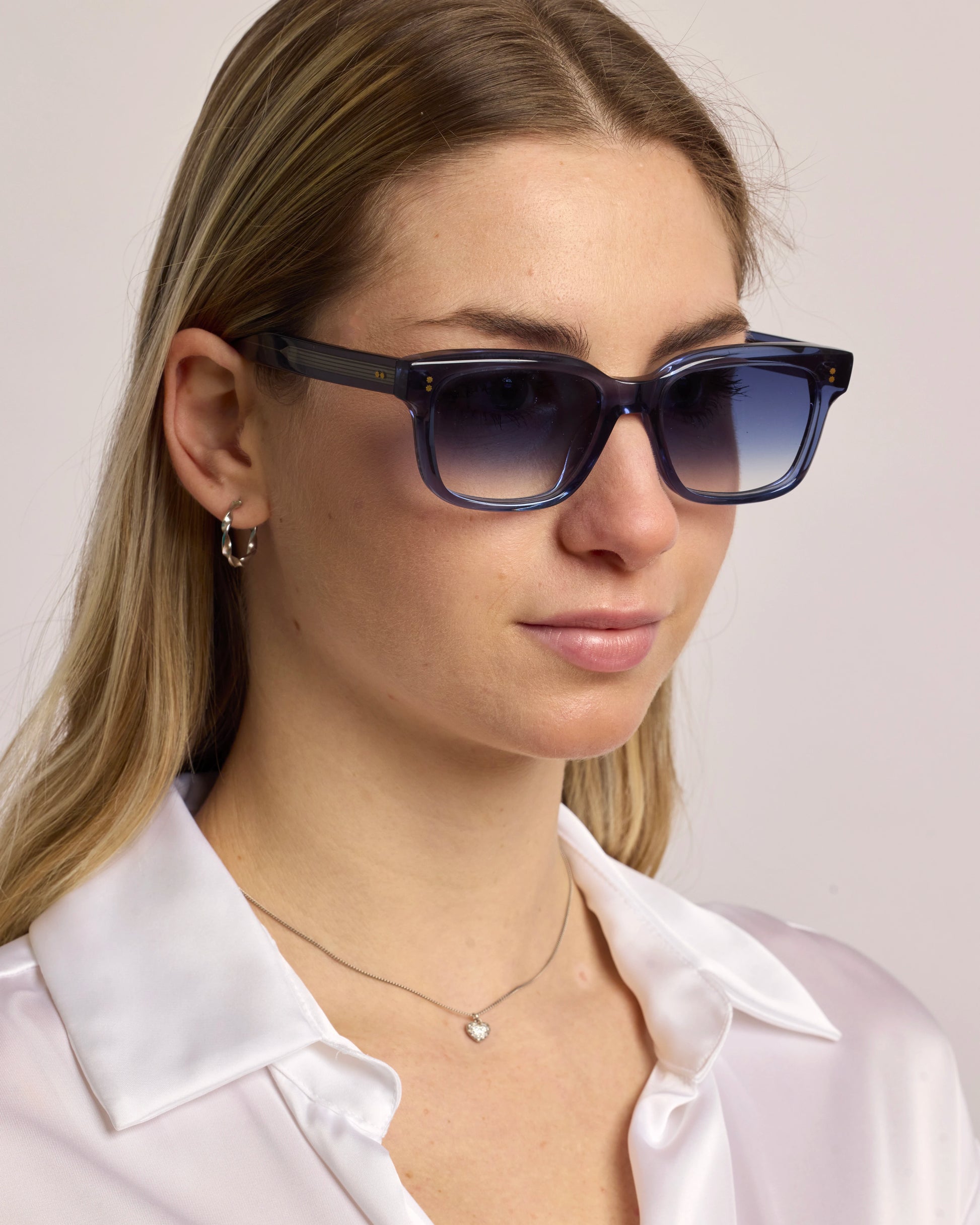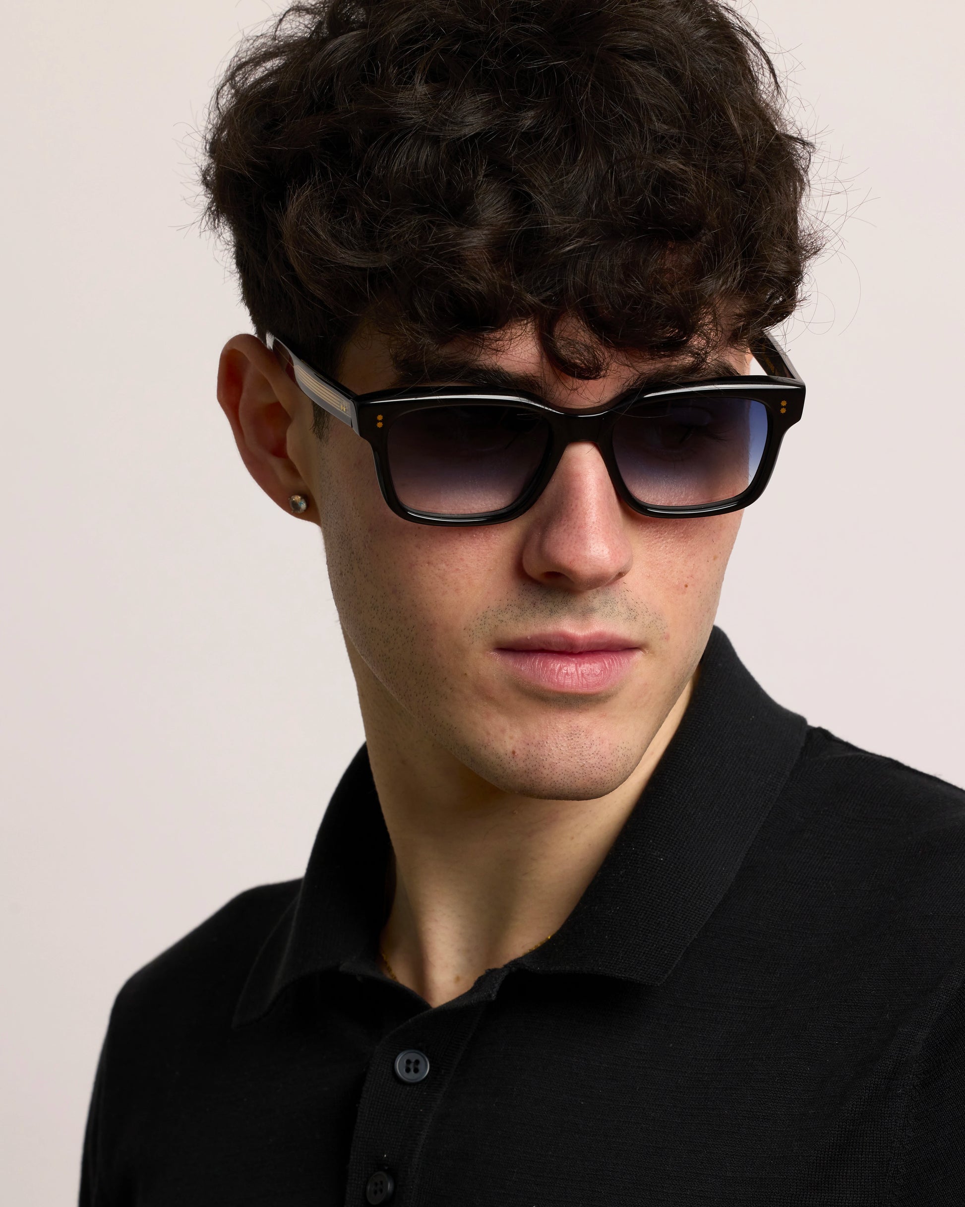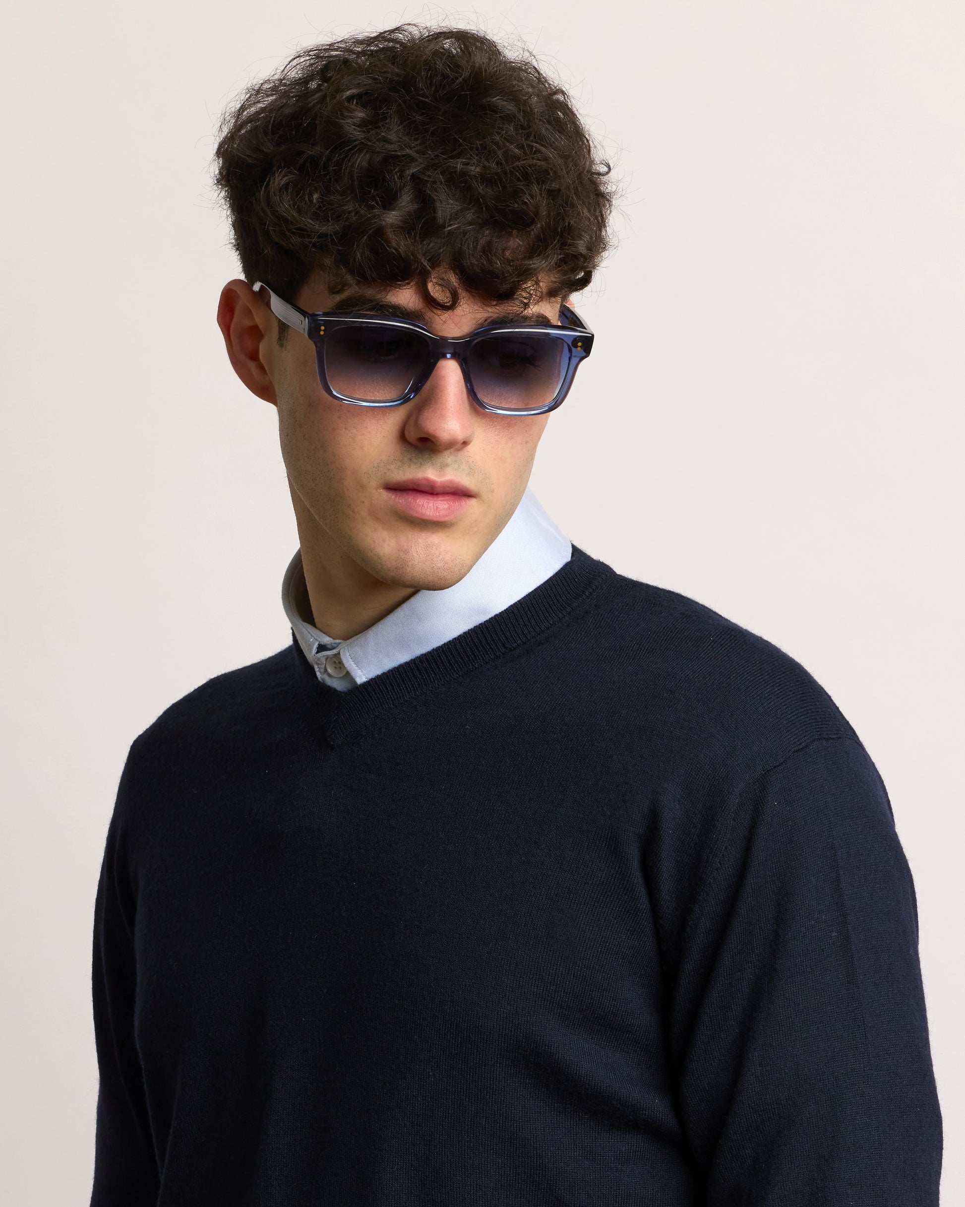 Sbarbatoo Batista è un occhiale dalla forma rettangolare, realizzato artigianalmente in acetato di cellulosa nel colore nero, blu e trasparente.